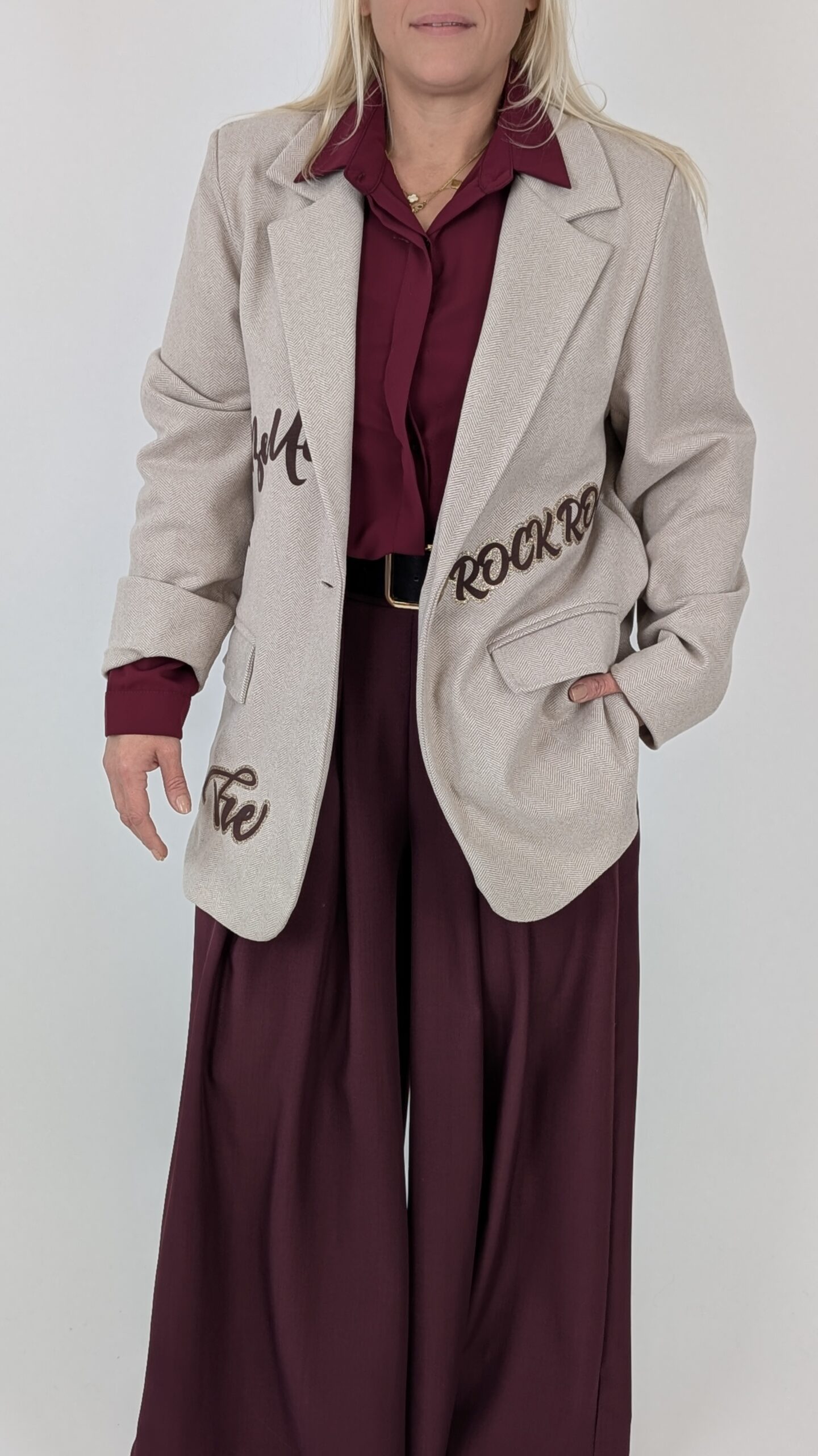 To so hlače, ki združujejo udobje in popoln kroj. Široke hlačnice se ob hoji mehko gibljejo in ustvarjajo občutek lahkotnosti, medtem ko visok pas oblikuje ženstveno linijo telesa. Material je mehak, z rahlim sijajem, primeren za vse sezone – od elegantnih jesenskih dni do spomladanskih priložnosti.